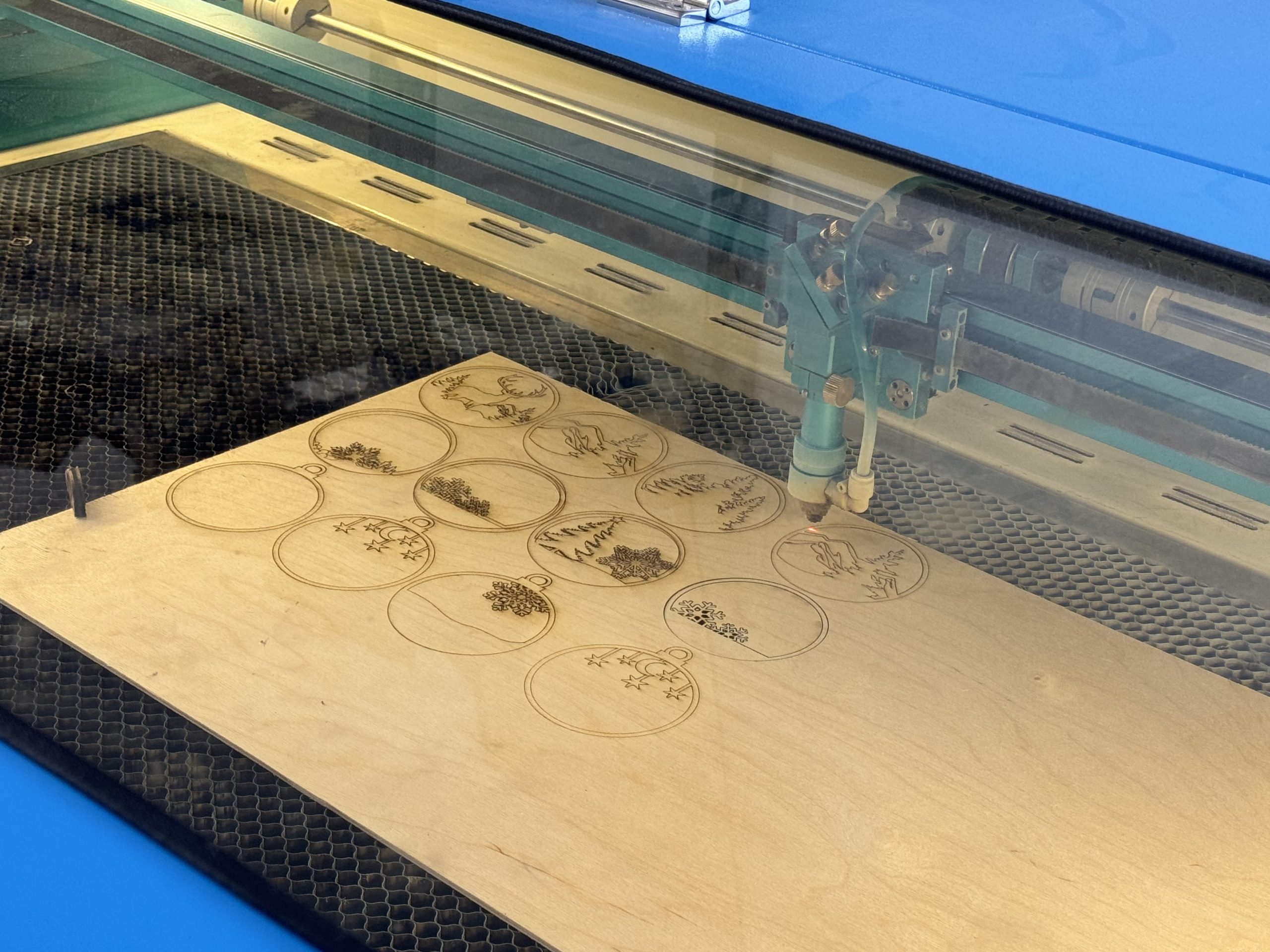 Every pass of the beam uncovers more of the design hidden within the grain, as though the wood itself is offering up its secrets. Each line, curve, and shadow adds depth, turning a simple surface into something rich with character. What results is not just an image on wood, but a meeting of patience, skill, and imagination—an artwork that feels both carefully made and quietly timeless.